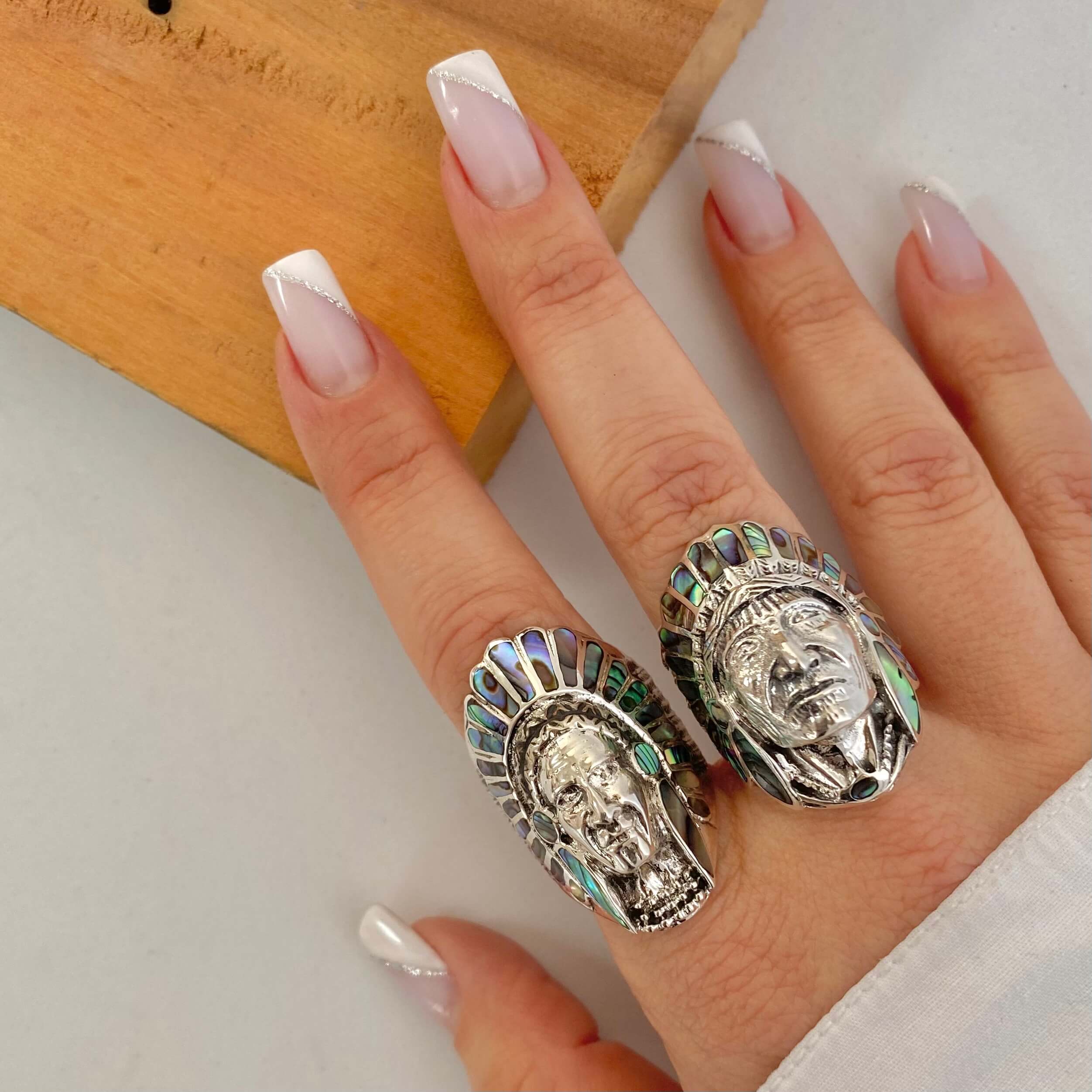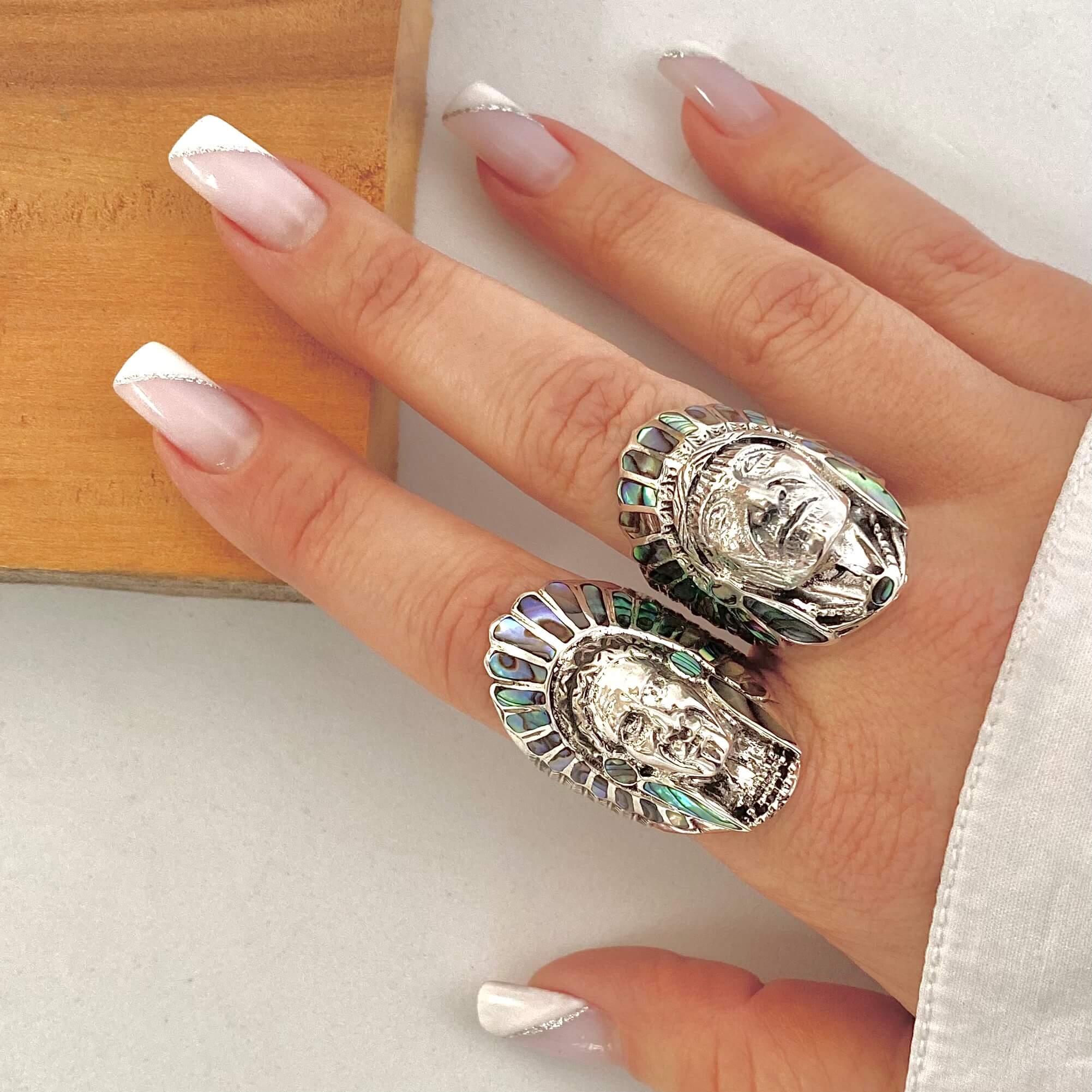Anéis Índios Pedra Abalone Natural. Importados. PRATA – 925. Mediante Disponibilidade no Momento da Separação.