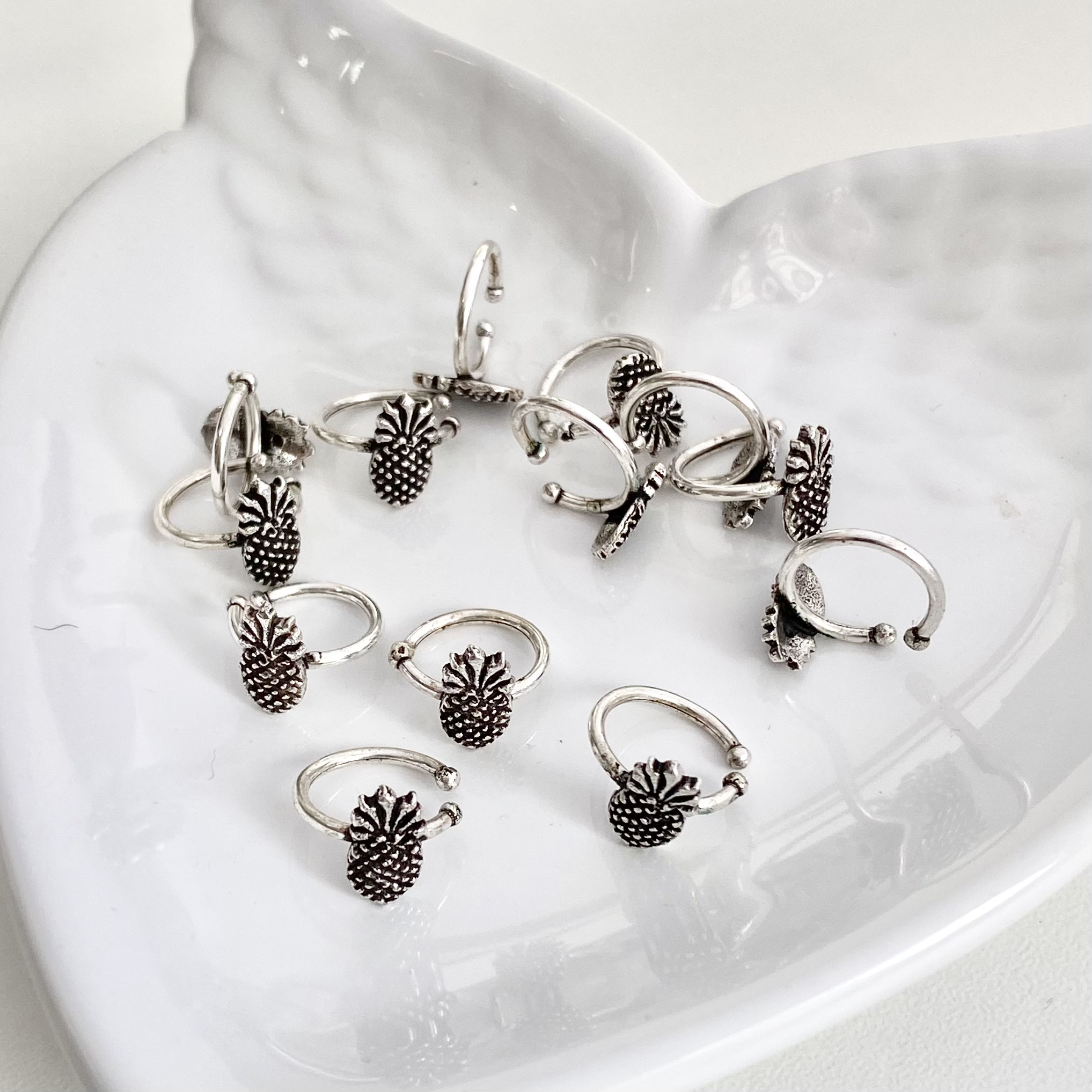 Brinco de Pressão Abacaxi Envelhecido. Importado. PRATA - 925. Mediante Disponibilidade no Momento da Separação.
