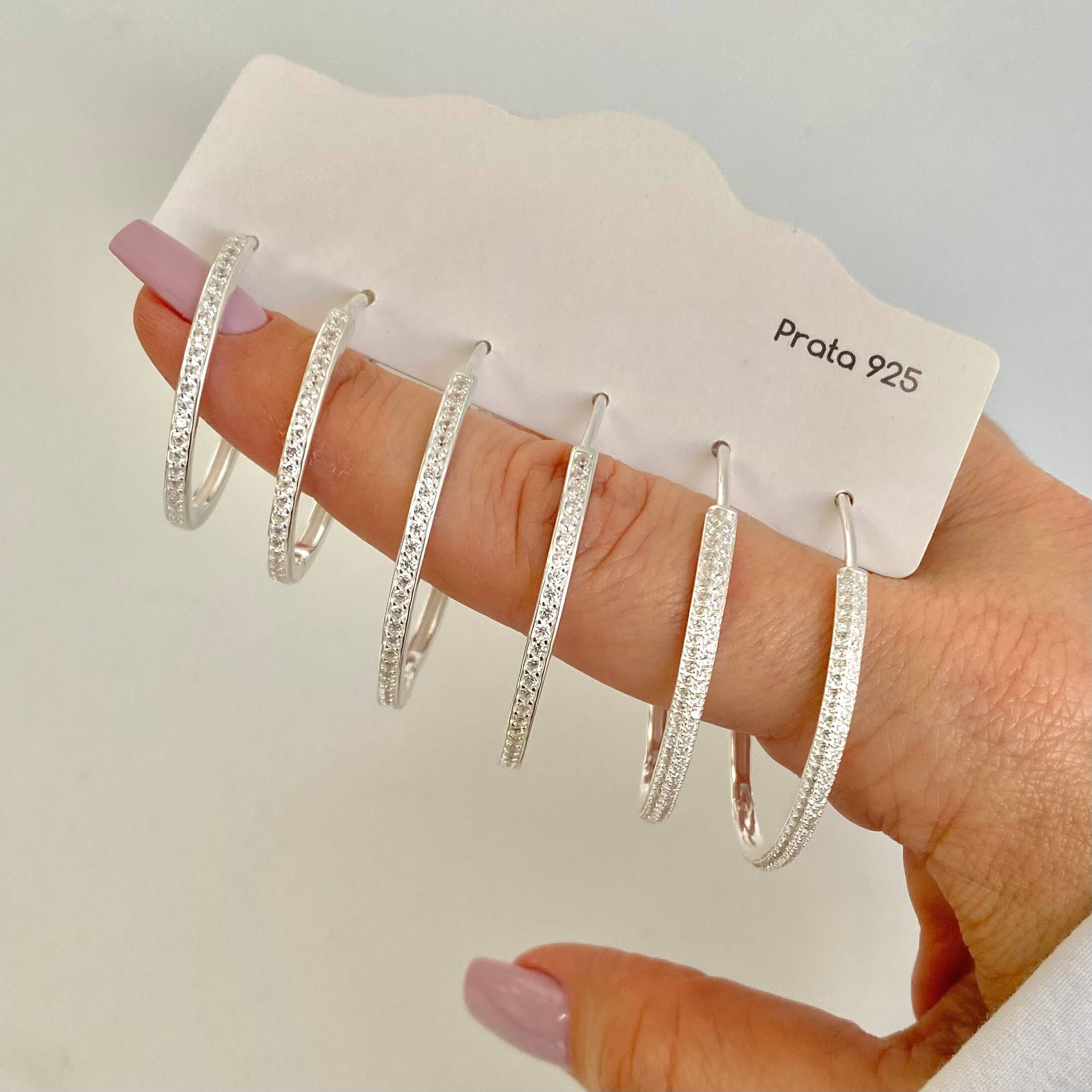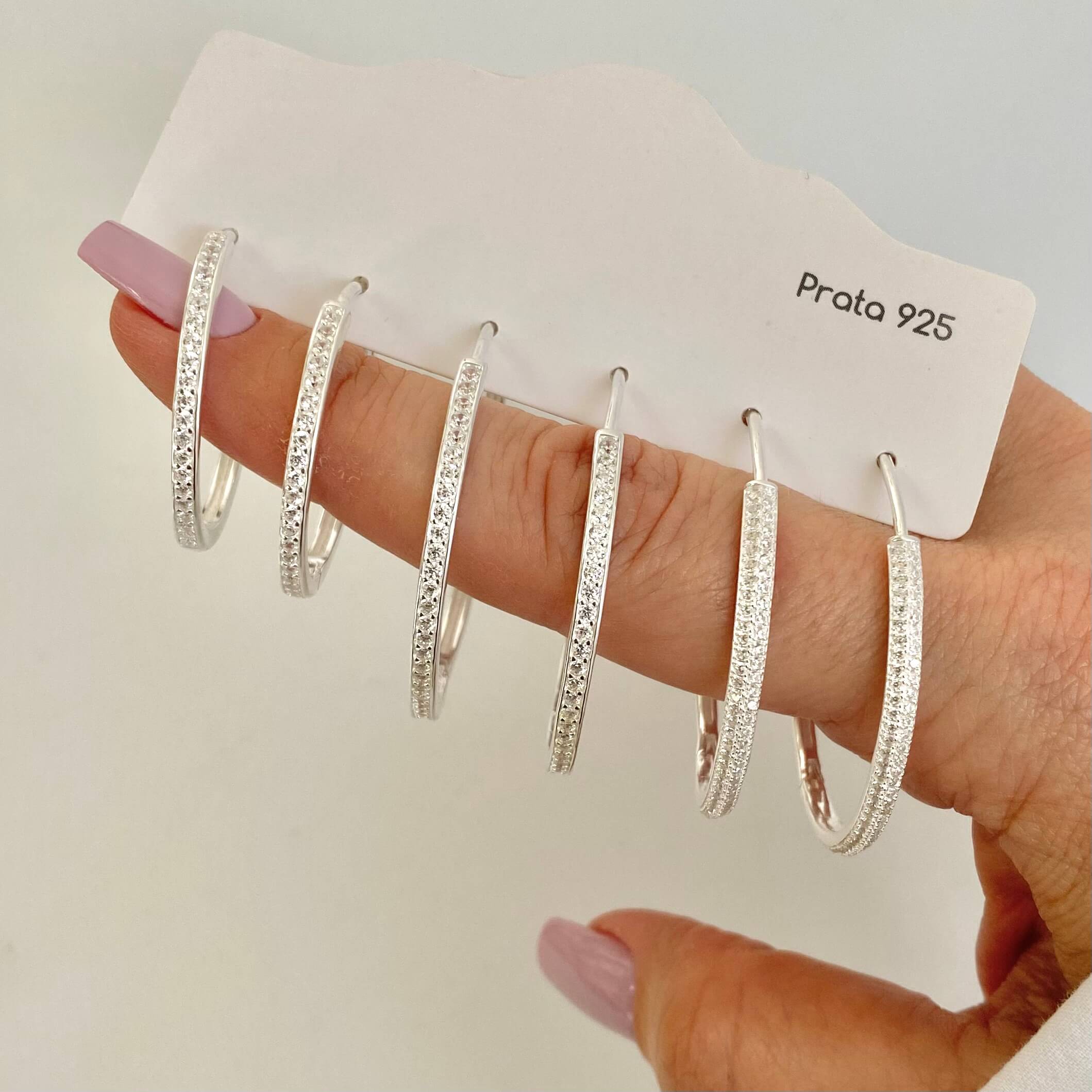 Brincos Argolas Pedra. Importadas. Prata – 925. Mediante Disponibilidade no Momento da Separação.