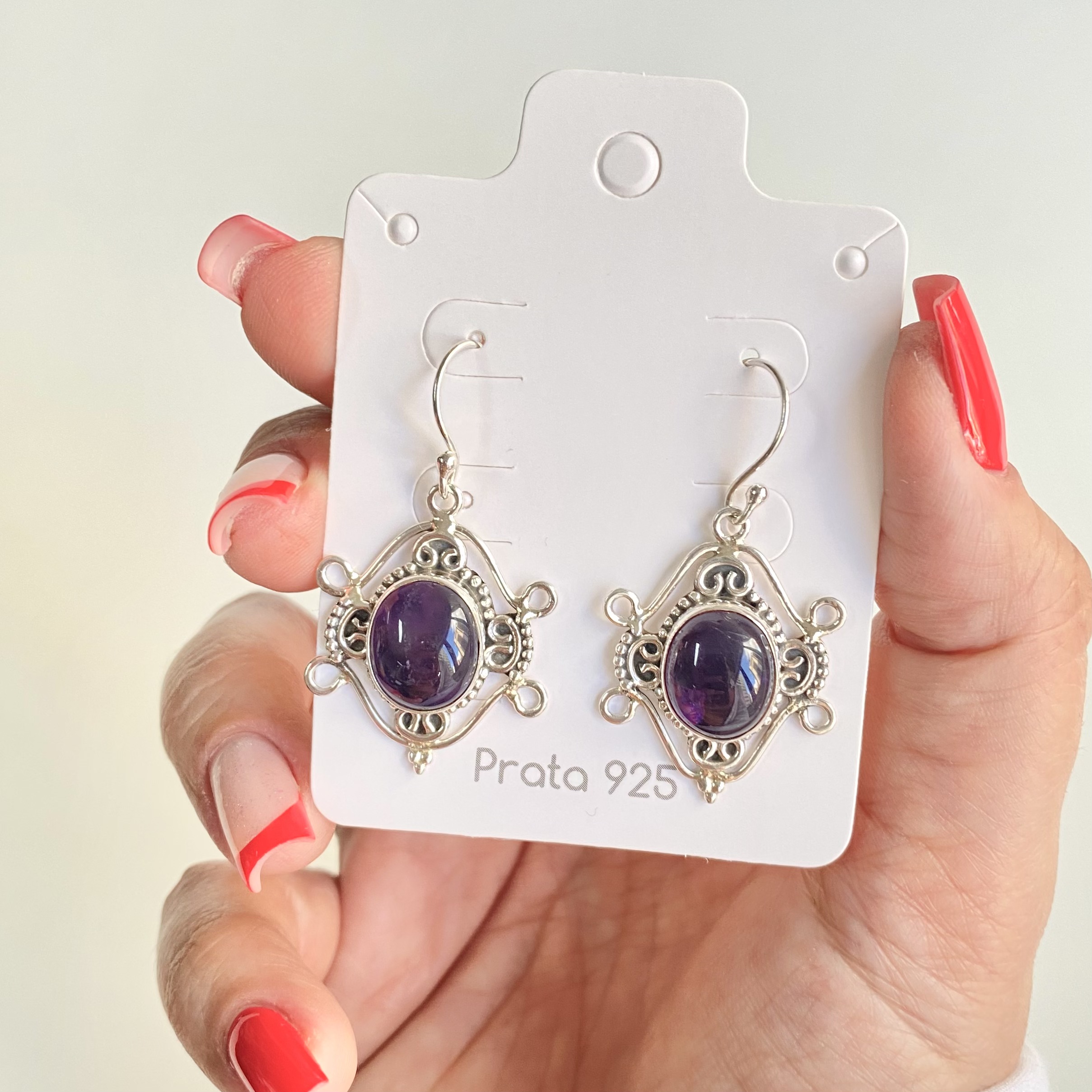 Brincos Bali Pedra Ametista Natural. Importado. Prata - 925. Mediante Disponibilidade no Momento da Separação.