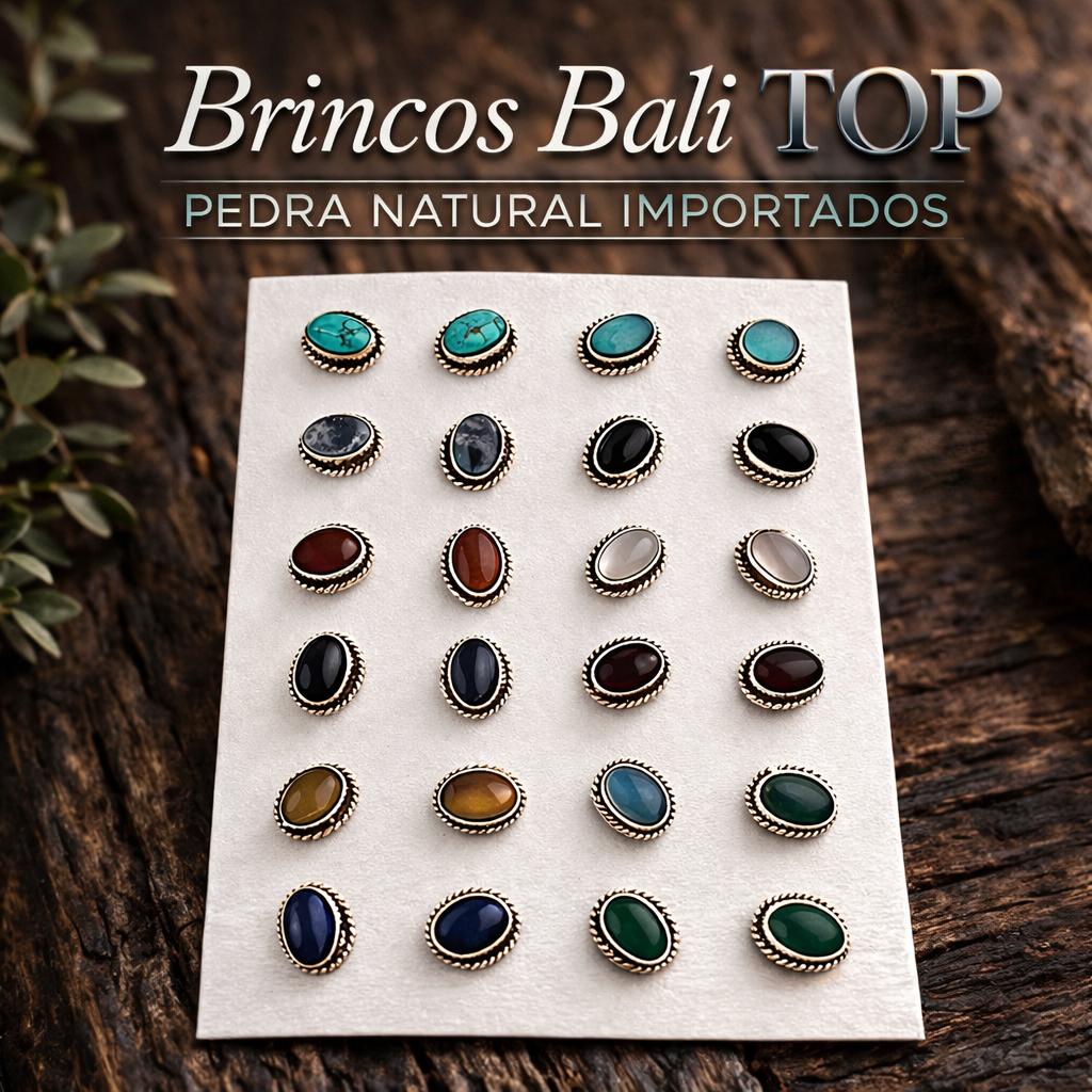 Brincos Bali TOP Pedra Natural. Importados. PRATA - 925. Mediante Disponibilidade no Momento da Separação.