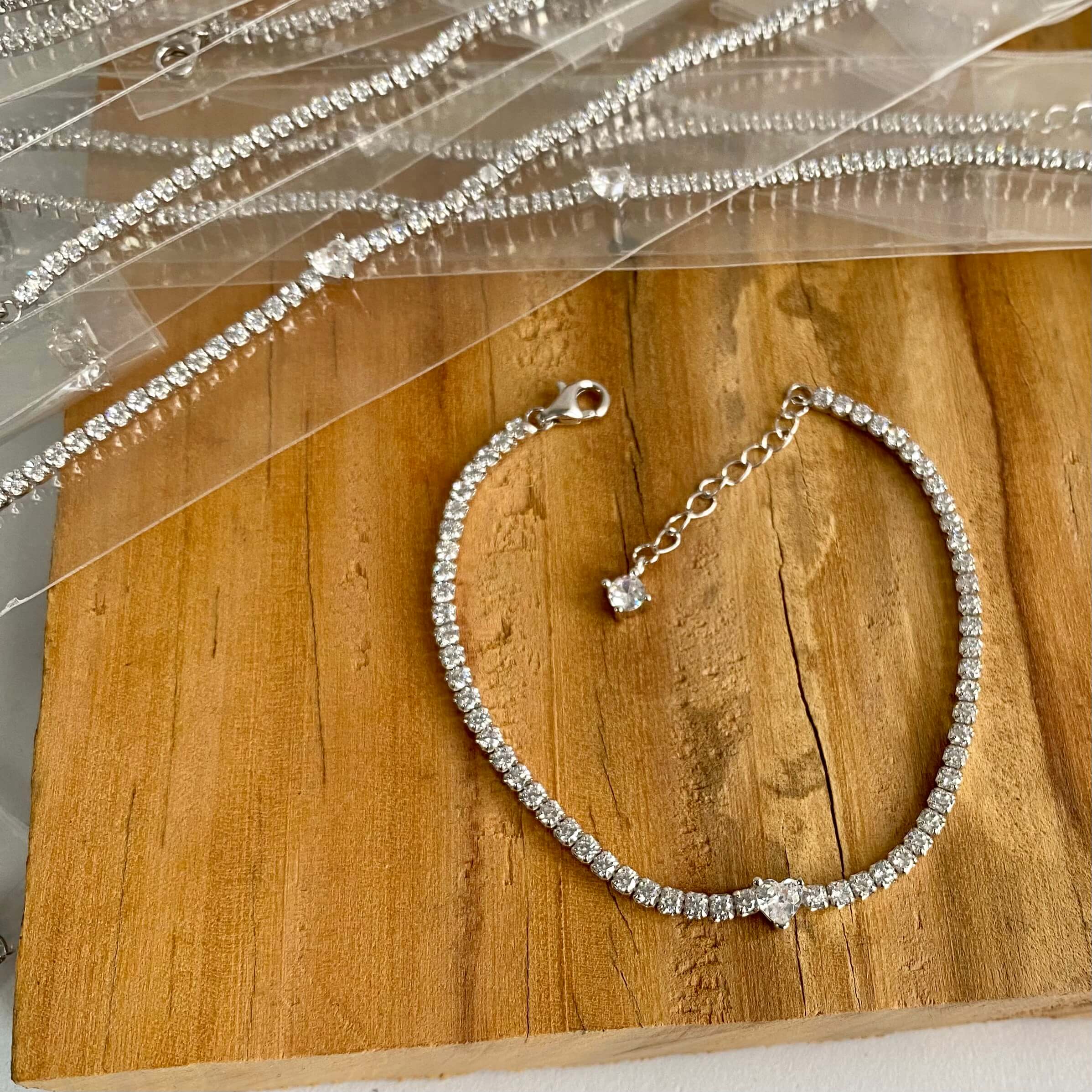Pulseiras Riviera Pedra. Coração e Ponto Luz. Pedra Zircônia. 19cm / 2,0mm. Importada. PRATA - 925. Mediante Disponibilidade no Momento da Separação.